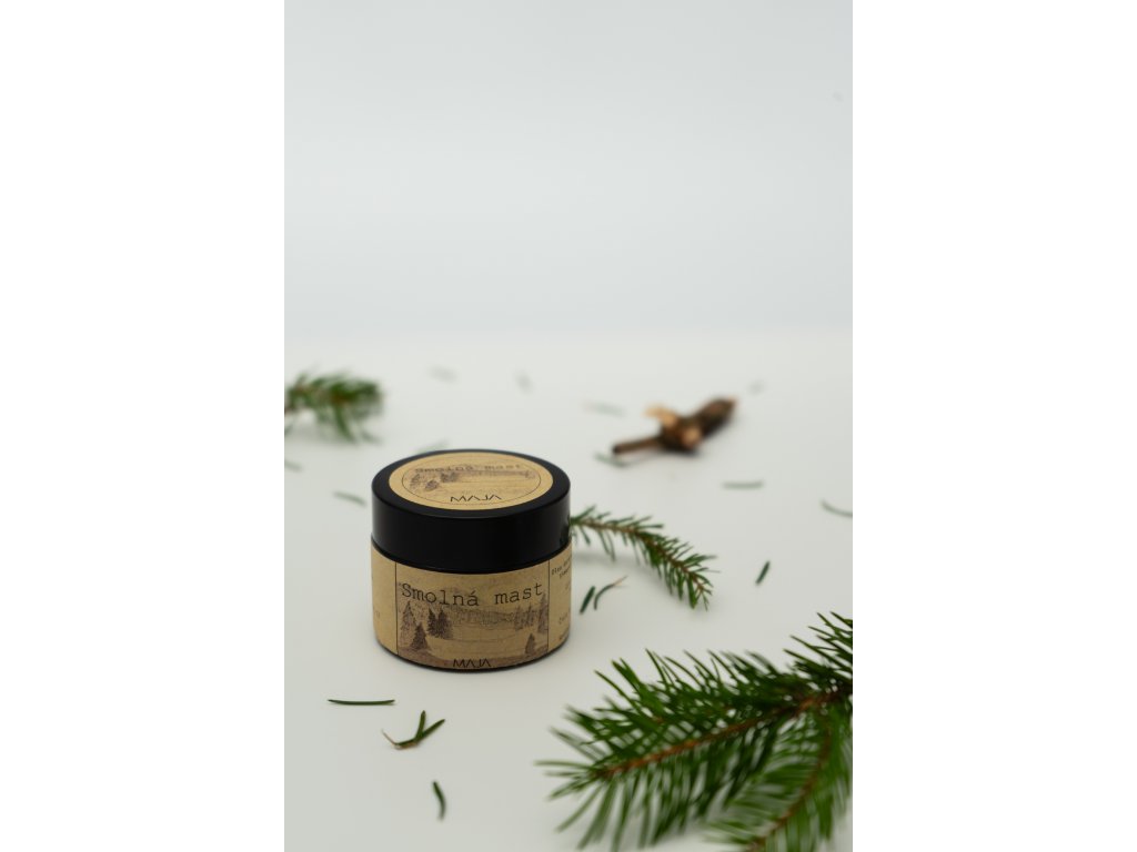 Tento "zlatý poklad" pro Vás nově vyrábíme v naší dílně. Výrobu masti začínáme pečlivým výběrem smrkové pryskyřice, kterou ručně a šetrně sbíráme v lesích Šumavy. Sběr pryskyřice má za sebou dlouholetou tradici. Vzhledem k nešetrnému sběru byl však tento obor - smolařství - zcela omezen. My jsme se rozhodli (na základě staré receptury v novém kabátě) oživit tuto úžasnou surovinu a zahrnout ji do masti, kterou lze aplikovat na všechny typy pokožky. Účinky pryskyřice, které uvádějí zahraniční studie, jsou opravdu rozsáhlé.